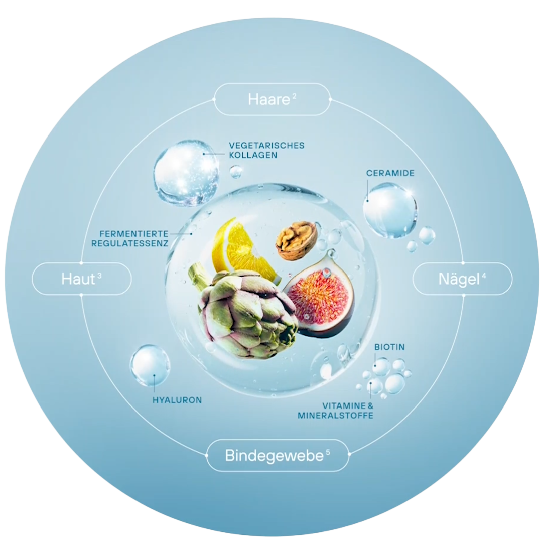 Beide Beauty Drinks enthalten 25 % der fermentierten Regulatessenz®, die die Aufnahme der Inhaltsstoffe verbessert und im Vergleich zu herkömmlichen Beauty Drinks für eine höhere Bioverfügbarkeit sorgt. Die Regulatessenz® wird übrigens nach einem patentierten Fermentationsprozess hergestellt – der Kaskadenfermentation.